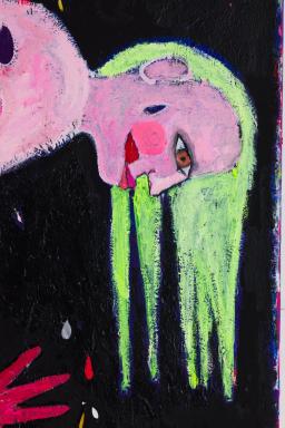 acrylic, oil pastel,glitter on canvas