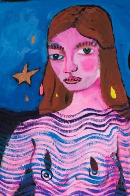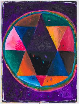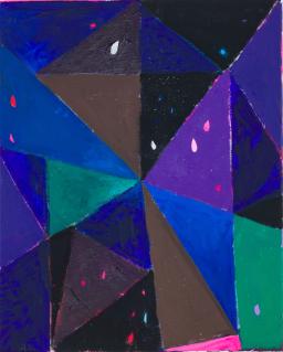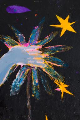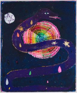 acrylic, oil pastel, glitter on canvas