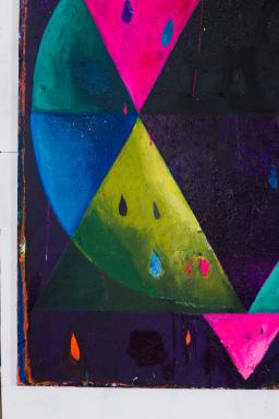 Acrylic, Oil pastel, Glitter, Sand on canvas