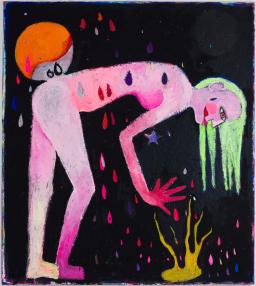 Acrylic, coal, Oil pastel, Paper
